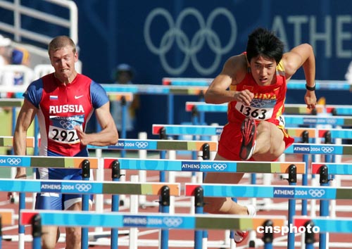 劉翔在賽前就已成為外界關(guān)注的焦點,電視鏡頭一直聚焦在劉翔和他的首要對手、美國老將阿蘭·約翰遜身上。劉翔在第三組出場,他起跑反應(yīng)迅速,一直處于領(lǐng)先位置,第一個沖過終點線,十三秒二七的成績令他在所有四十八名選手中名列第三。