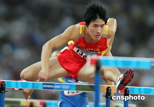 當(dāng)?shù)貢r(shí)間八月二十五日晚,在雅典奧運(yùn)會(huì)田徑男子一百一十米跨欄第二輪比賽中,中國選手劉翔順利地以十三秒二六的成績獲得小組第一,進(jìn)入半決賽。中新社記者:毛建軍