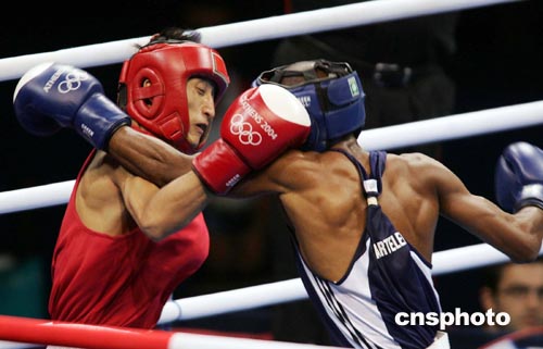 當?shù)貢r間8月27日,中國選手鄒市明(左)在奧運會拳擊男子48公斤級半決賽中,負于古巴強手揚·巴特雷米,無緣決賽。由于奧運會拳擊比賽不再進行三四名的爭奪,因此鄒市明已經獲得銅牌。這是中國拳手在奧運會上歷史性的突破,中國拳手此前在奧運會上從未進入過前4名。中新社記者:毛建軍