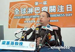 第一屆全球淋巴瘤關注日新聞發(fā)布會9月14日在香港大學醫(yī)學院大樓舉行,香港大學醫(yī)學院血液及腫瘤科主管梁憲孫教授表示,本港在91至01年十年期間,淋巴瘤個案增加超過兩成,達到640宗。港大醫(yī)學院及血癌基金,將15日訂為全球淋巴瘤關注日。作者:鄧慶樂