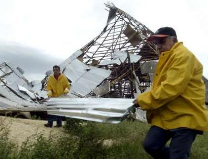 據(jù)路透社報道,颶風“伊萬”昨日襲擊了古巴,很快將登陸美國東南部沿海。圖為遭遇颶風襲擊后的當?shù)鼐用竦姆课荨?固山)
