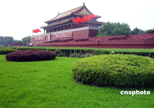 2004年9月15日,翻建后拆除圍擋的北京天安門(mén)觀禮臺(tái)全新亮相。天安門(mén)觀禮臺(tái)建成50年來(lái)首次于2004年5月20日開(kāi)工翻建。在保持原貌的基礎(chǔ)上,觀禮臺(tái)的結(jié)構(gòu)、建筑材料和綜合功能發(fā)生很大變化。作者:五河