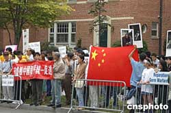 美東華人當(dāng)?shù)貢r(shí)間九月十八日在華盛頓集會(huì)示威,抗議日本不正視侵華戰(zhàn)爭罪行。作者:余東暉