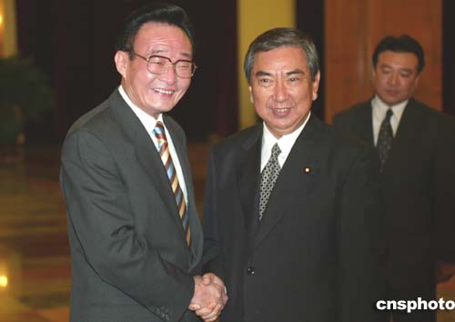 全國人大常委會委員長吳邦國九月二十日在北京會見日本眾議院議長河野洋平率領(lǐng)的日本眾議院代表團,并舉行會談。中新社記者:滿會喬