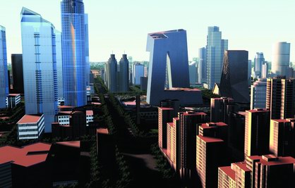 CCTV主樓的兩個(gè)塔樓從一個(gè)共同的平臺(tái)升起,在上部匯合,形成三維體驗(yàn),突破了摩天樓常規(guī)的豎向特征的表現(xiàn)。復(fù)雜的功能包容在內(nèi)部緊密連接的環(huán)路中,體現(xiàn)一個(gè)相互合作、相互依存的鏈條以及自身組織的有序和協(xié)調(diào)。