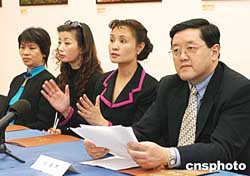 被稱(chēng)為世界服裝之都的紐約,二○○四年十二月將由華人首次主辦模特選拔賽,比賽名為“美麗人生”。圖為選拔賽召集人艾冰(右二)與紐約華人總商會(huì)會(huì)長(zhǎng)劉建邦(右)等向新聞界發(fā)布消息。據(jù)悉,在世貿(mào)組織有關(guān)紡織品配額開(kāi)放后,這次比賽將給新銳服裝設(shè)計(jì)師和華人服裝廠商提供施展拳腳的機(jī)會(huì)。作者:龔文謨