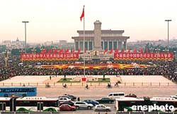 十月二日的國(guó)慶節(jié)假日,天安門廣場(chǎng)向北京市民來賓開放,數(shù)十萬游人,紛至沓來,從各個(gè)通道擁進(jìn)廣場(chǎng)觀光,形成節(jié)日人山人海的景觀。作者:鄒憲