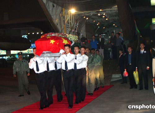 中新社濟(jì)南十月十六日電 (記者 王魯平 胡洪林)在巴基斯坦人質(zhì)綁架事件中遇難的中國工程師王鵬遺體,今晚八點四十五分由巴基斯坦的專機(jī)運回,抵達(dá)山東省濟(jì)南國際機(jī)場,中國外交部、商務(wù)部、山東省人民政府等有關(guān)部門的官員在濟(jì)南機(jī)場舉行莊嚴(yán)的靈柩迎接儀式。