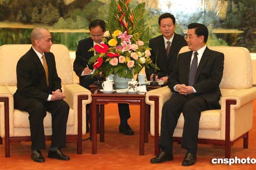 胡錦濤會(huì)見柬埔寨新國(guó)王西哈莫尼 暢談兩國(guó)友誼