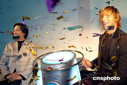 圖為索普(左)與索尼中國副總裁遲澤準(zhǔn)亮相現(xiàn)場氣氛熱烈。