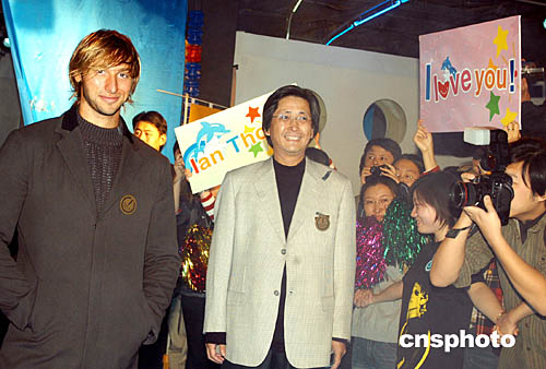 十月二十八日,世界泳壇名星伊恩·索普作為索尼產(chǎn)品代言人亮相北京,此次訪華將為索尼旗下的數(shù)碼照相機(jī)產(chǎn)品、數(shù)碼攝像機(jī)產(chǎn)品以及貴翔電視機(jī)產(chǎn)品作宣傳。中新社記者:張宇
