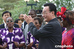 吳邦國(guó)委員長(zhǎng)來(lái)到聯(lián)合國(guó)駐內(nèi)羅畢總部,受到當(dāng)?shù)刂铣獔F(tuán)的熱烈歡迎。