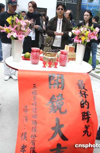 十一月十七日,由臺灣著名導(dǎo)演侯孝賢執(zhí)導(dǎo)的電影《最好的時光》在臺北開鏡。圖為著名影星舒淇(左二)在開鏡前上香。作者:董會峰