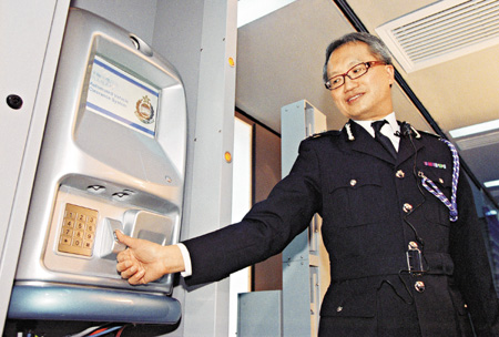 另外,車輛(司機)自助出入境檢查系統(tǒng)將于明年初于邊境管制站推出,預計三個口岸共有四十二條車輛信道。系統(tǒng)會自動識別過關(guān)的汽車車牌,然后把指紋檢查器調(diào)至適當高度供司機使用,由于已檢查車牌,因此司機不用刷身分證亦可順利過關(guān)。