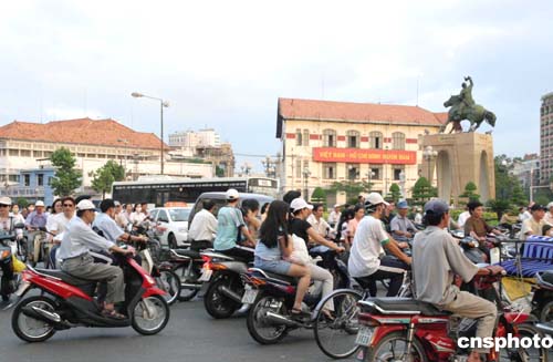 越南胡志明市擁有三百萬(wàn)輛摩托車(chē),一到下班,摩托車(chē)大軍擁塞街頭。作者:邢健