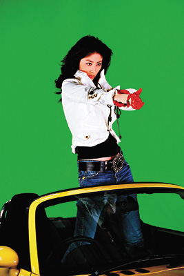 日前Kelly為“亞洲游戲展2004”拍攝《情人戰(zhàn)》MV及電視廣告,Kelly扮演一個(gè)廢墟之中的車神,化身超時(shí)空戰(zhàn)士拯救世界。拍攝時(shí)她一身白色冷艷女車神造型,站在Copen開篷跑車中,為營(yíng)造賽車的情形,導(dǎo)演用一把大風(fēng)扇,對(duì)著她吹了一小時(shí),令她不停叫冷。