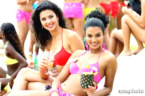 在12月4日舉行第54屆世界小姐總決賽前夕,為拍攝宣傳短片,各國美女身著泳裝在三亞開沙灘派對,盡情感受三亞熱情風(fēng)情。作者:喜來登