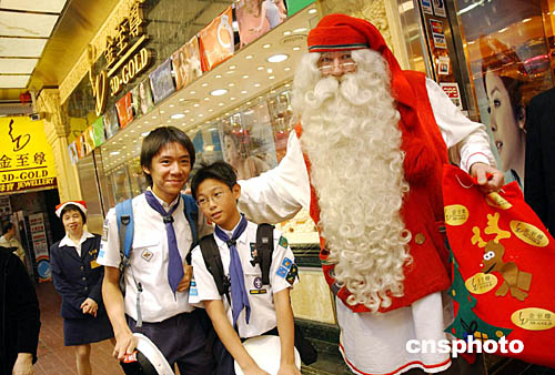 圖為圣誕老人在銅鑼灣鬧市向市民贈(zèng)送禮物。