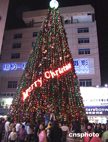 進(jìn)入十二月,雖然離圣誕節(jié)還有段時(shí)日,但福州街頭的圣誕氣氛已開(kāi)始變濃。圖為一商場(chǎng)為吸引顧客,在商場(chǎng)外樹(shù)起巨大的許愿圣誕樹(shù),吸引許多人。作者:王東明