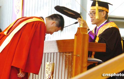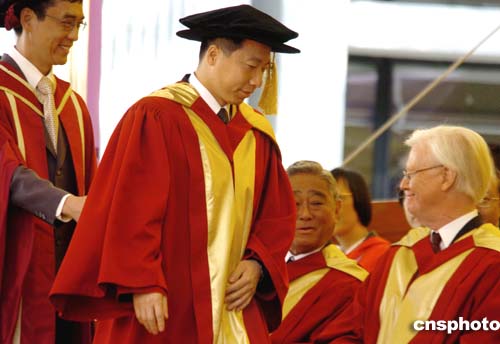 香港中文大學(xué)校長劉遵義12月9日為中國首位登上太空的航天員楊利偉,頒授榮譽理學(xué)博士學(xué)位。作者:宋吉河
