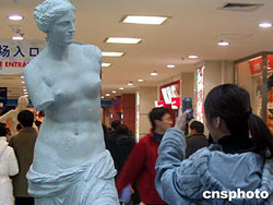 2004年12月13日,84件法國盧浮宮雕塑藝術(shù)品的復(fù)制品在北京免費(fèi)展示。展覽在家樂福的中關(guān)村廣場舉辦,為期8天,為北京的普通消費(fèi)者增加一個(gè)近距離了解法國國寶的機(jī)會。作者:張碩