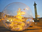 當(dāng)?shù)氐氖フQ裝置中,最矚目首推Vendome廣場上一個(gè)個(gè)巨型圣誕泡泡玻璃球,不但每個(gè)泡內(nèi)也藏有一株圣誕樹,透過光折射,似將整個(gè)廣場藏于泡內(nèi),很有童話色彩﹗原來這些玻璃球是紀(jì)念瑞士在巴黎推廣旅游一百周年而特地設(shè)置的。