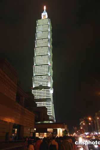 2004年12月31日夜晚,世界最高的臺(tái)北101大樓落成啟用。入夜后,整座大樓景觀燈齊亮,蔚為壯觀。作者:黃少華