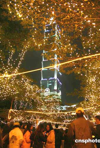 元旦凌晨,臺(tái)北街頭彩燈處處,大批民眾在世界第一高樓臺(tái)北101大樓附近流連忘返。作者:黃少華