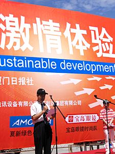 在第三十六屆世界電信日即將來(lái)臨之際,中國(guó)電信寬帶用戶突破一千萬(wàn),成為中國(guó)寬帶業(yè)務(wù)眾多服務(wù)提供商中首個(gè)突破千萬(wàn)用戶的運(yùn)營(yíng)商。圖為廈門電信公司總經(jīng)理陳揚(yáng)忠宣布啟動(dòng)“激情體驗(yàn)”系列慶;顒(dòng)。作者:楊伏山