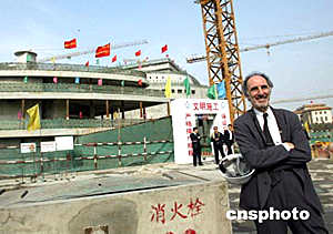 當(dāng)?shù)貢r(shí)間5月23日6時(shí)57分,法國(guó)巴黎戴高樂國(guó)際機(jī)場(chǎng)2E候機(jī)廳發(fā)生坍塌事故。目前事故中有兩名中國(guó)公民遇難。該候機(jī)樓的設(shè)計(jì)者是巴黎機(jī)場(chǎng)公司建筑設(shè)計(jì)所,原首席設(shè)計(jì)師為保羅·安德魯。他提供的中國(guó)國(guó)家大劇院的設(shè)計(jì)方案,目前正在施工中。據(jù)悉,保羅·安德魯正在趕回法國(guó)途中。圖為保羅·安德魯2003年4月25日北京國(guó)家大劇院工地。中新社記者:滿會(huì)喬