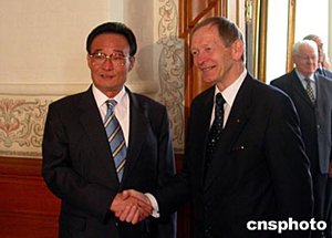 全國人大常委會委員長吳邦國六月一日在丹麥會見丹麥議長麥達爾。中新社記者:戴亞平