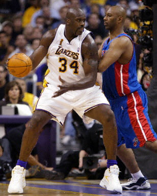 湖人隊“大鯊魚”奧尼爾拿下全隊最高的34分和11個籃板,科比貢獻(xiàn)25分,湖人只有兩人得分達(dá)到兩位數(shù);活塞這邊,比盧普斯拿下22分,拉希德-華萊士有14分入帳,漢密爾頓得到12分,普林斯貢獻(xiàn)11分。