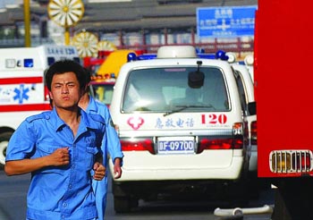 “他們都是嗆傷,傷勢(shì)比較輕!毕挛5時(shí)許,海淀區(qū)304醫(yī)院共收到9名京民大廈火災(zāi)事故受傷人員,經(jīng)過(guò)半個(gè)小時(shí)的治診,已有8人離院。該院急診科值班護(hù)士在查閱了記錄后說(shuō),離院的8人都是自己走入診室的,只有留院治療的孫朝輝是被抬下救護(hù)車的。