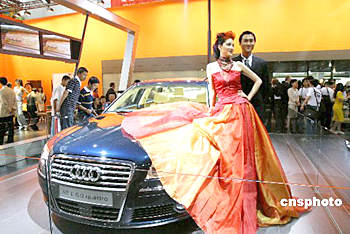 6月9日是2004年北京國(guó)際汽車展覽會(huì)開幕前一天的新聞日,一批名模出現(xiàn)在名車展臺(tái),在各大汽車廠商推出的精彩節(jié)目中亮相。魯谷 攝