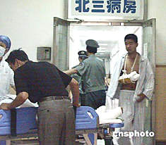 六月十日上午,北京市積水潭醫(yī)院正在全力搶救六月九日京民大廈火災(zāi)中的受傷人員。這場(chǎng)火災(zāi)當(dāng)時(shí)共造成9人死亡,39人受傷。作者:韓藝冰