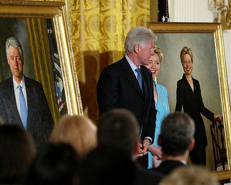 在白宮東廳所舉行的總統(tǒng)夫婦畫像懸掛儀式上,布什稱贊克林頓作為一名為公眾服務(wù)的政治界人士“向人們展示了令人難以置信的活力以及偉大的個(gè)人號(hào)召力”。布什在發(fā)表講話時(shí),克林頓就坐在他面前的第一排座位之上,布什繼續(xù)說道:“作為美國(guó)總統(tǒng),他表現(xiàn)出了在公共政策方面的深謀遠(yuǎn)慮以及遠(yuǎn)見卓識(shí),他在危難當(dāng)中對(duì)人們表現(xiàn)出了偉大的感情,他所表現(xiàn)出的高瞻遠(yuǎn)矚是身為美國(guó)公民的人們所樂意看到的。比爾-克林頓將總會(huì)看到日子一天比一天好,美國(guó)人民也知道他正在努力工作,以使美好的日子盡快到來。在八年擔(dān)任美國(guó)總統(tǒng)的時(shí)間之內(nèi),毫無疑問的一點(diǎn)是比爾-克林頓非常熱愛他的工作,他給白宮帶來了活力與樂趣。他是一個(gè)充滿激情而又待人熱情的人,他可以做出很好的成績(jī)并最終將自己所追求的服務(wù)大眾的事業(yè)繼續(xù)推向前進(jìn)。”布什在講話當(dāng)中還列舉了克林頓總統(tǒng)在任上的種種業(yè)績(jī)。