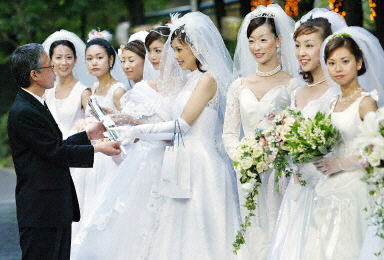 日本東京六月十五日舉行一年一度的“婚紗大賽”,六十余名美容師、藝術(shù)家在化妝、發(fā)型、服飾設(shè)計(jì)等方面一較高下。