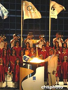 中新社聯(lián)合國(guó)六月十九日電 (記者 陳建 趙海燕)十九日開始在紐約傳遞的雅典奧運(yùn)火炬當(dāng)天傍晚抵達(dá)紐約聯(lián)合國(guó)總部,這是奧運(yùn)圣火首次經(jīng)過聯(lián)合國(guó),紐約聯(lián)合國(guó)總部為此舉行了隆重儀式,并升起了奧林匹克休戰(zhàn)旗,呼吁全世界為奧林匹克創(chuàng)造和平。
