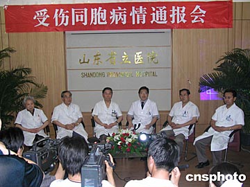 在兩位傷者與記者見面之前,山東省立醫(yī)院向媒體通報了四位傷員目前的治療情況。該院副院長秦成勇向記者介紹,山東諸城的王金生右上臂軟組織損傷,入院期間曾出現(xiàn)睡眠障礙,每晚睡覺不足兩小時,經心理專家精心治療,現(xiàn)已基本痊愈,明日上午十點出院。