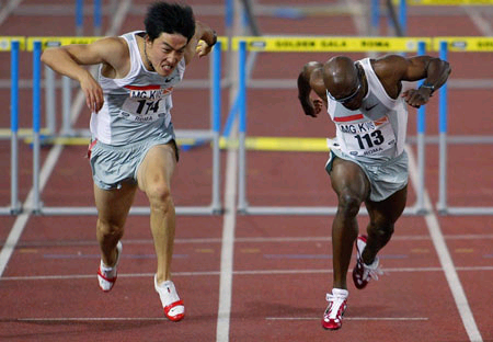 中新網(wǎng)7月3日電 據(jù)中廣網(wǎng)消息,中國選手劉翔2日晚在意大利羅馬舉行的國際田聯(lián)黃金聯(lián)賽第二站的非黃金設(shè)項的男子110米欄比賽中,取得13秒11的成績,與老對手、美國名將艾倫·約翰遜幾乎同時沖過終點,但約翰遜因有效部位率先過終點而贏得冠軍,劉翔屈居亞軍。