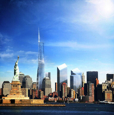 最終勝出的是理念前衛(wèi)的建筑師丹尼爾·利柏斯凱因德。他設計的1776英尺高的“自由塔”形似遙相呼應的自由女神像。