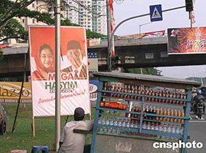 印尼現(xiàn)任總統(tǒng)梅加瓦蒂面對強力挑戰(zhàn),候選人當(dāng)中有兩個印尼退休將軍。其中一個是印尼前政治安全統(tǒng)籌部長蘇希洛·班邦·尤多約諾,另一個則是印尼前三軍總長維蘭托。