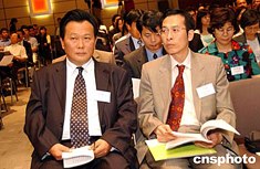 為了讓香港服務(wù)提供者進(jìn)一步了解在CEPA框架下在內(nèi)地提供服務(wù)的申請程序及要求,工商及科技局和廣東省經(jīng)濟(jì)貿(mào)易委員會于7月8日在香港合辦咨詢會。圖為廣東省經(jīng)濟(jì)貿(mào)易委員會巡視員巫開立[左]、廣東省司法廳副廳長黃武出席咨詢會。作者:洪少葵