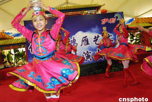 七月十日,二○○四首屆上海國際少年兒童文化藝術(shù)節(jié)在一片歡慶聲中拉開帷幕。來自世界各地的小朋友歡聚一堂載歌載舞歡度節(jié)日。中新社記者:湯彥俊