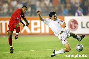 七月十七日晚,在北京工人體育場進(jìn)行的亞洲杯揭幕戰(zhàn)中國隊(duì)對巴林隊(duì)的比賽中,巴林隊(duì)二比二戰(zhàn)平中國隊(duì)。