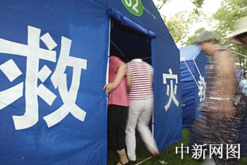 中新社北京七月二十日電(記者 吳慶才)今天,兩千余名北京市民在北京元大都城垣遺址公園的殘?jiān)珨啾谇绑w驗(yàn)了一場(chǎng)“勝利大逃亡”,北京市首次大型防震減災(zāi)、應(yīng)急避難救援演習(xí)在此上演。