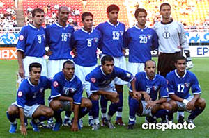 二○○四年七月二十三日,亞洲杯B組比賽在濟(jì)南山東省體育中心重燃戰(zhàn)火,由業(yè)余球員組成的約旦隊迎戰(zhàn)目前小組排名第一的科威特隊。圖為科威特隊首發(fā)陣容。中新社記者:武仲林