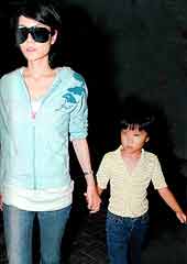 王菲顯然聽到,一臉尷尬地拖著童童到頭等艙休息室等候。記者看到她一臉疲累,坐在椅子上閉目養(yǎng)神。下午5時15分,登機廣播傳來,王菲立即起身帶女兒到柜臺辦手續(xù)。