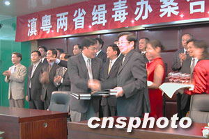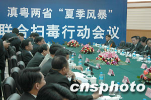 七月二十三日下午,滇粵兩省在昆明舉行“夏季風暴”聯(lián)合掃毒行動會議。由廣東省委副書記王華元及副省長李容根率領的廣東禁毒代表團,與中共云南省委常委李明朝、副省長李漢柏等就雙方建立合作機制進行了深入的探討。兩省警方負責人還共同簽署了《滇粵兩省公安機關(guān)聯(lián)合開展打擊跨區(qū)域毒品犯罪專項行動方案》和《滇粵兩省公安機關(guān)全面加強緝毒辦案合作協(xié)議》。此舉標志著兩省禁毒合作新機制的全面啟動。按照協(xié)議,兩省將全面加大緝毒情報交流和辦案執(zhí)法合作力度,組織偵破一批高質(zhì)量、跨區(qū)域、有組織的制販毒案件并將建立若干合作機制。王華元表示,為加強禁毒工作,廣東省將于近期成立禁毒工作局,增加禁毒力量,并將在各地成立禁毒支隊。與此同時,還將動員全社會的力量嚴厲打擊毒品犯罪活動。中新社納家驊/攝