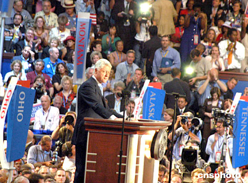中新網(wǎng)7月26日電 據(jù)路透社報(bào)道,美國(guó)民主黨全國(guó)代表大會(huì)26日在波士頓開(kāi)幕,以前總統(tǒng)克林頓為首的民主黨老將們以全明星陣容亮相開(kāi)幕式,為該黨總統(tǒng)侯選人克里入主白宮站臺(tái)助選。除克林頓外,在開(kāi)幕式上發(fā)表講話的還包括前總統(tǒng)卡特、前副總統(tǒng)戈?duì)柤凹~約州參議員希拉里。